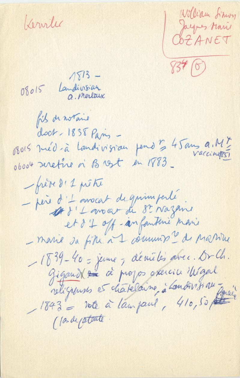 Papiers scientifiques de Jacques Léonard (1935-1988) : boîtes contenant par ordre alphabétique 3716 fiches biographiques portant sur des médecins de l'ouest de la France au XIXe siècle