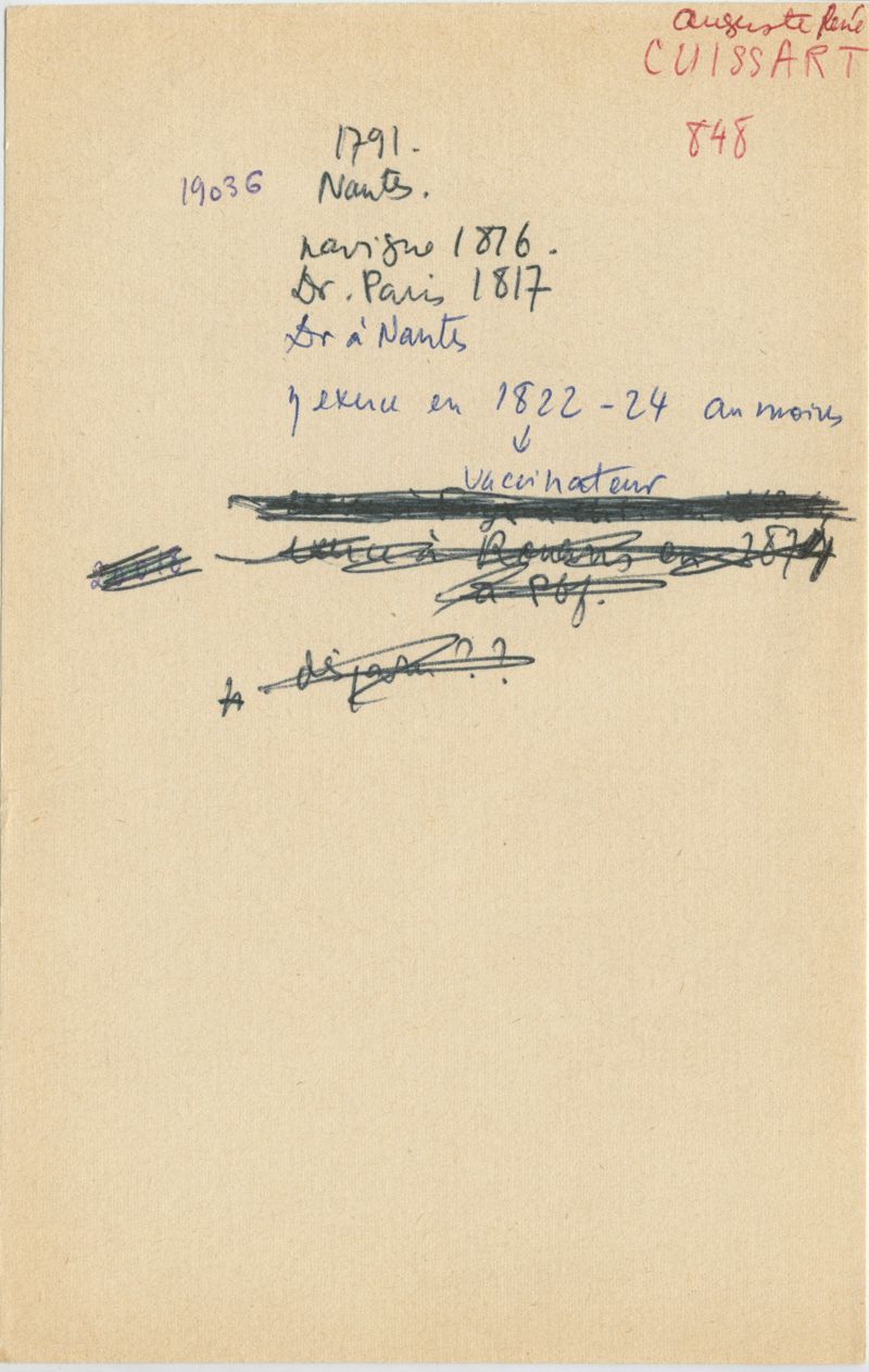 Papiers scientifiques de Jacques Léonard (1935-1988) : boîtes contenant par ordre alphabétique 3716 fiches biographiques portant sur des médecins de l'ouest de la France au XIXe siècle
