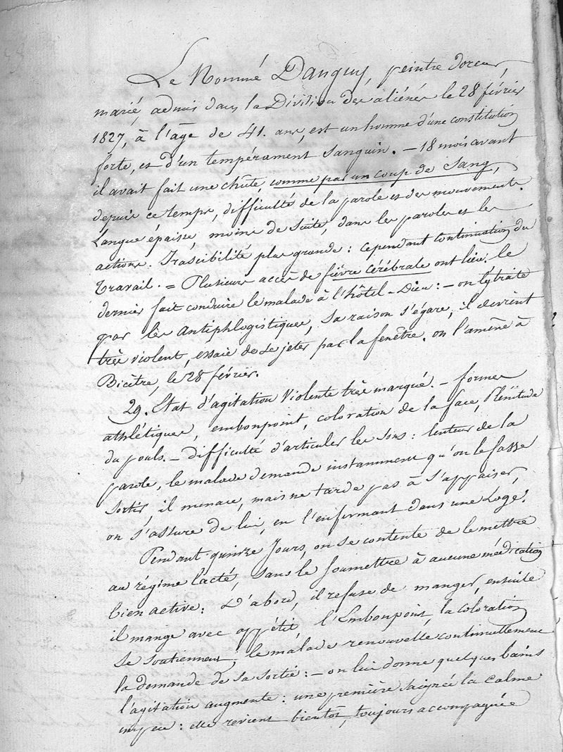 Histoire clinique de la folie, d'après les observations recueillies pendant dix ans dans la division des aliénés de l'hospice de Bicêtre, et pendant sept ans dans celle de l'Hospice de la Salpétrière