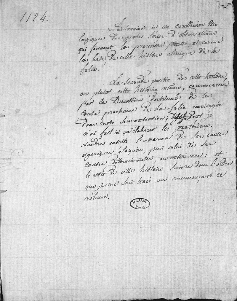 Histoire clinique de la folie, d'après les observations recueillies pendant dix ans dans la division des aliénés de l'hospice de Bicêtre, et pendant sept ans dans celle de l'Hospice de la Salpétrière