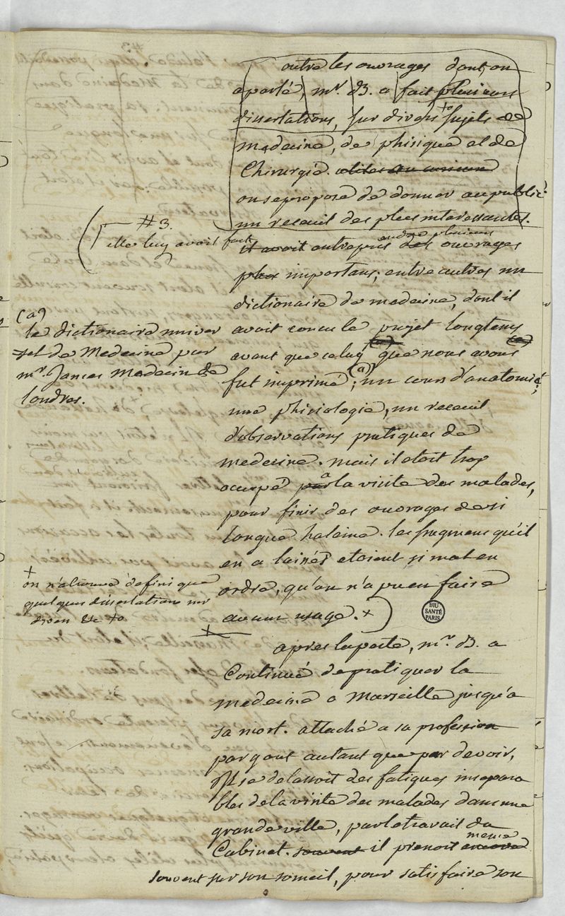 Manuscrit de travail pour une nouvelle édition de la "Relation historique de la peste de Marseille" en 1720 de Jean Baptiste Bertrand, comprenant un Avertissement et une Vie l'auteur