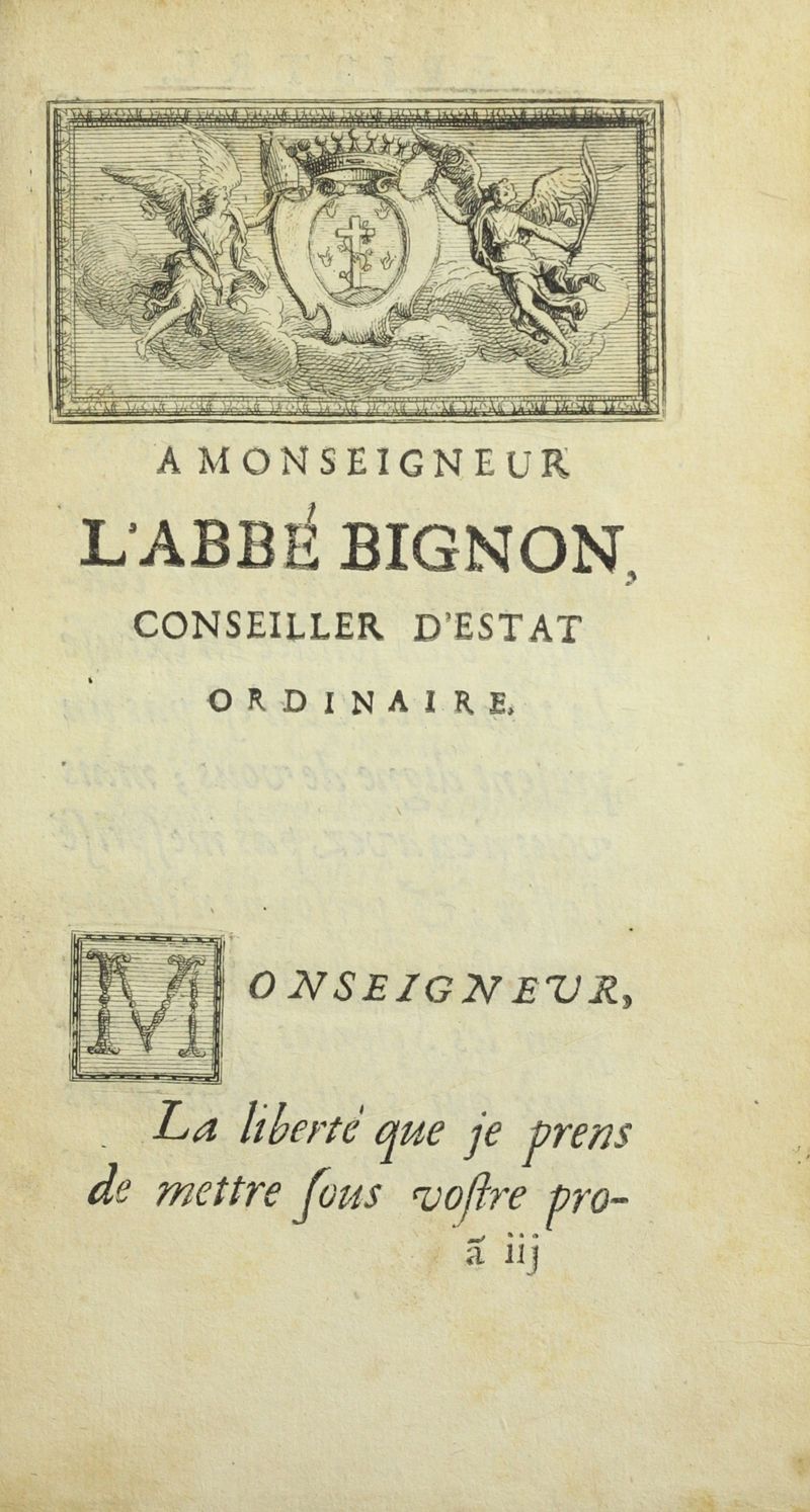 A Paris, chez Jean Baptiste Coignard, imprimeur ordinaire du Roy, ruë Saint Jacques, à la Bible d'or. MDCCVIII. Avec approbation & privilege du Roy,