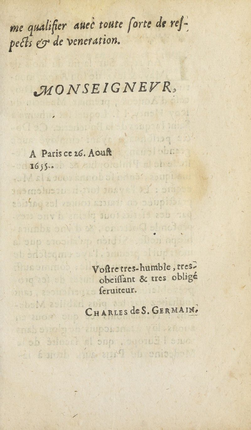 A Paris, chez Jean Guignard le jeune, en la grand'-salle du Palais, du costé de la Cour des Aydes, à l'image S. Jean. M. DC. LV. Avec privilege du Roy.,