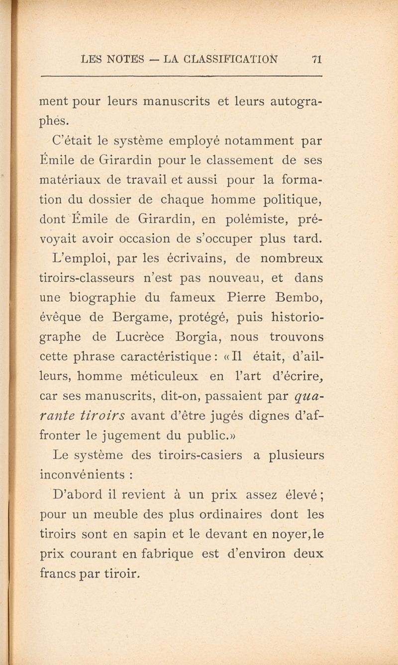 L'art de classer les notes et de garder le fruit de ses lectures et de ses travaux : Comment on organise son bureau, sa bibliothèque