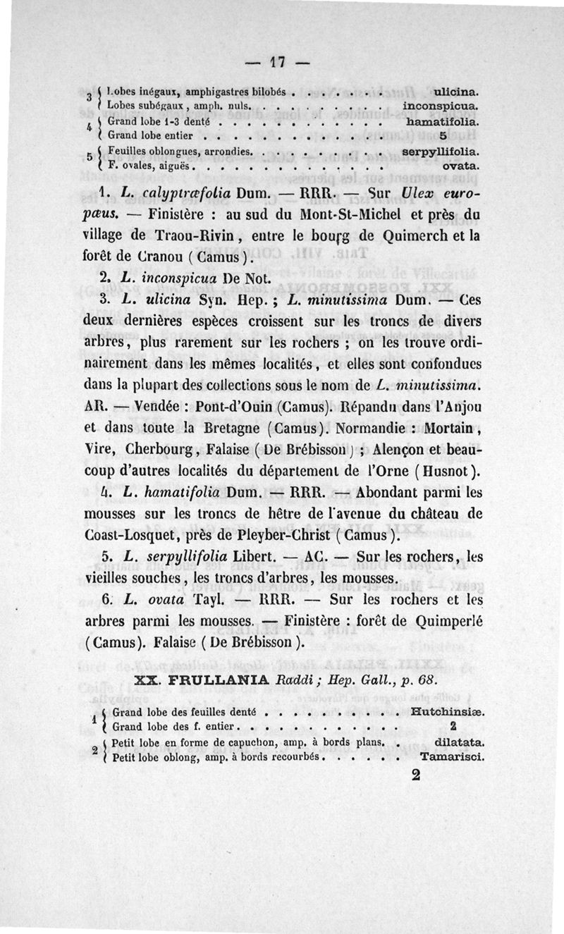Catalogue analytique des hépatiques du Nord-Ouest