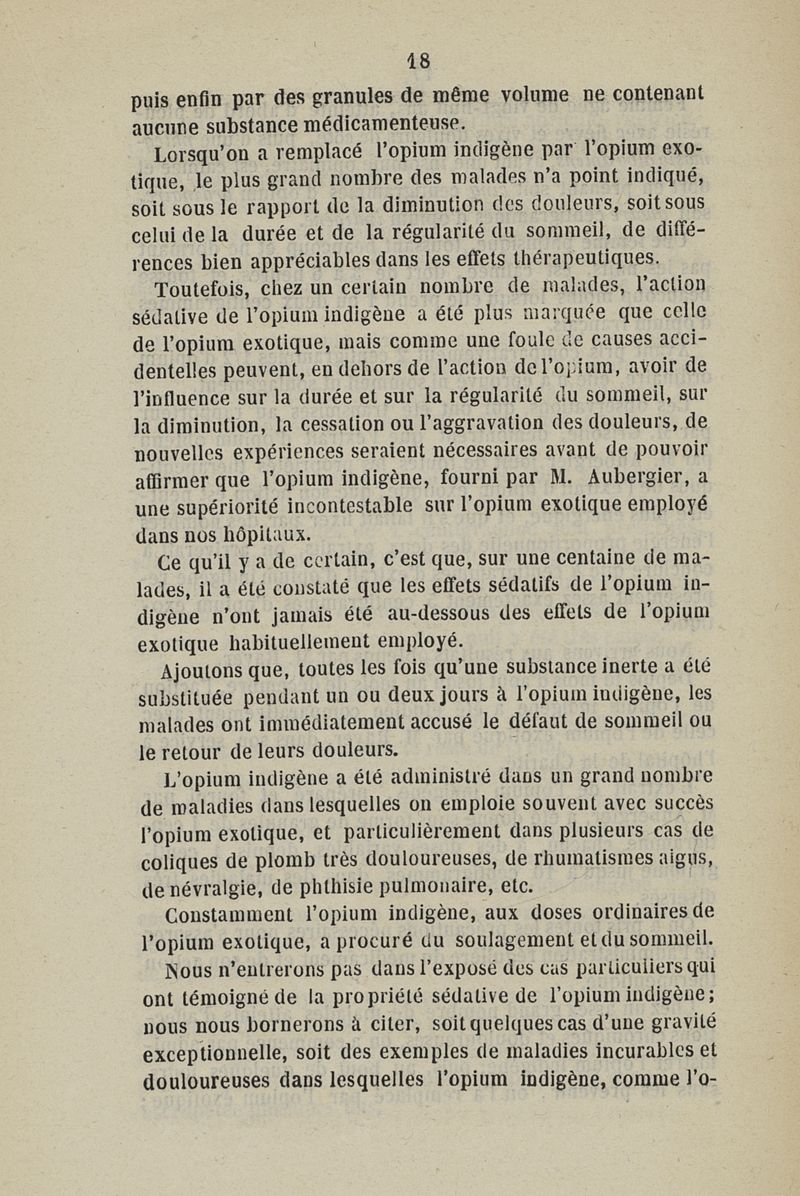 Mémoire sur l'opium indigène