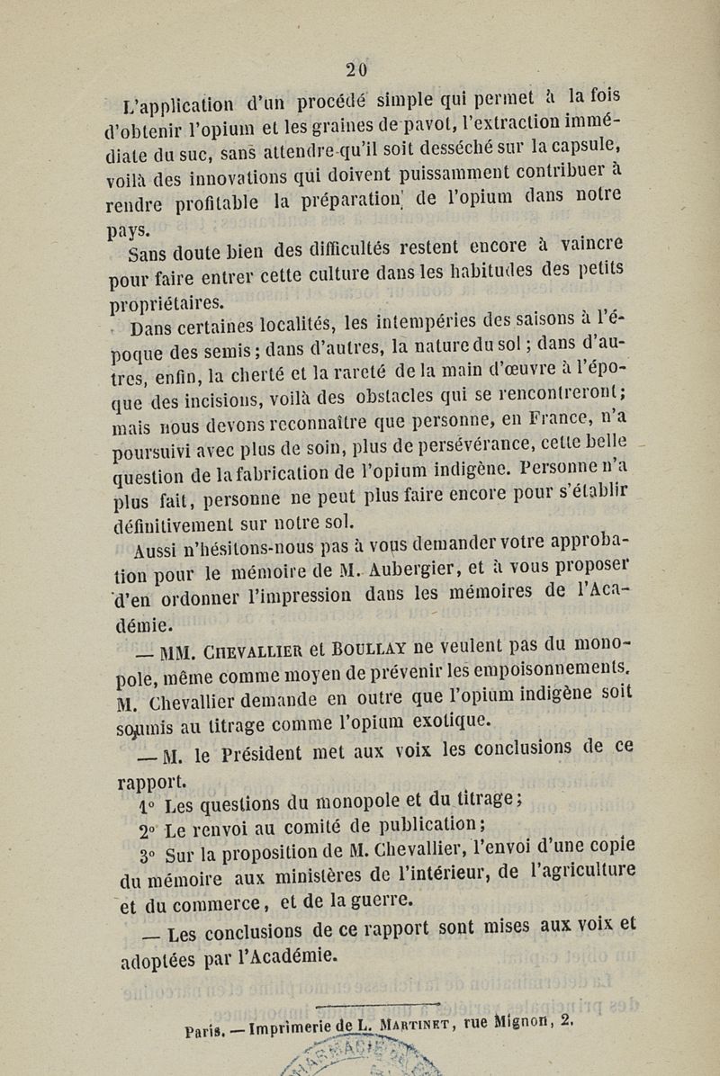 Mémoire sur l'opium indigène