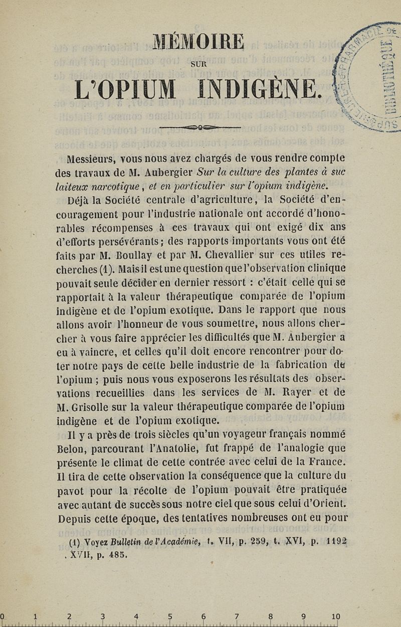 Mémoire sur l'opium indigène