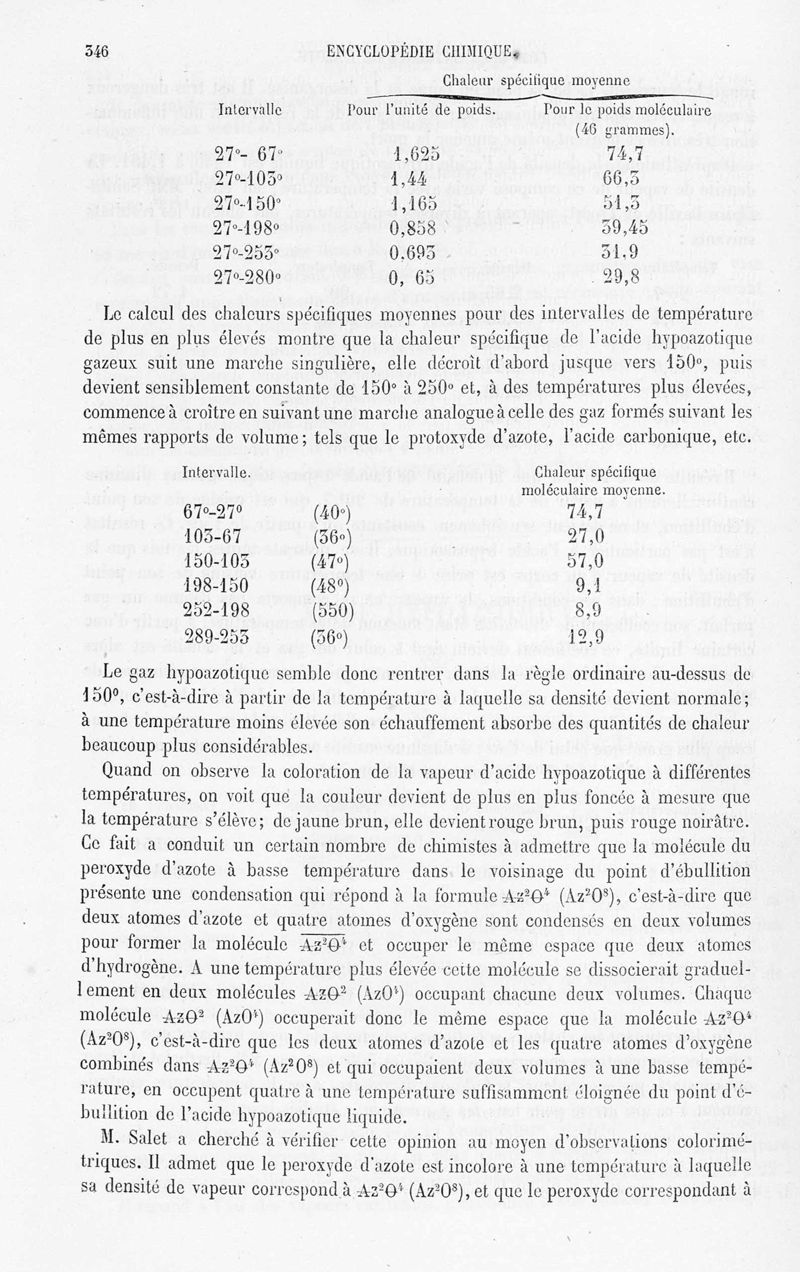 Encyclopédie chimique. Tome II.- Métalloïdes. 1er fascicule : Nomenclature, équivalents, atomes, oxygène, ozone, azote, air, hydrogène, eau, par MM. Frémy, Bourgoin, Gaudin, Lemoine et Urbain.