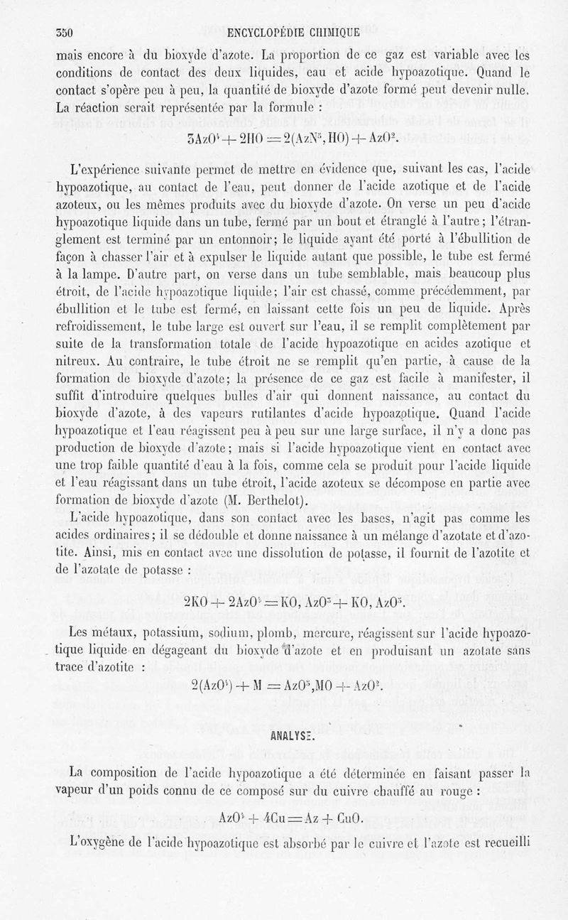 Encyclopédie chimique. Tome II.- Métalloïdes. 1er fascicule : Nomenclature, équivalents, atomes, oxygène, ozone, azote, air, hydrogène, eau, par MM. Frémy, Bourgoin, Gaudin, Lemoine et Urbain.