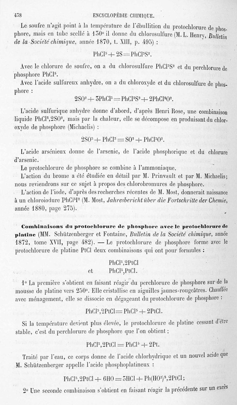 Encyclopédie chimique. Tome II.- Métalloïdes. 2e section (1er fascicule) : soufre, sélinium, tellure, phosphore, arsenic, par MM. Margottet, Lemoine et Urbain.