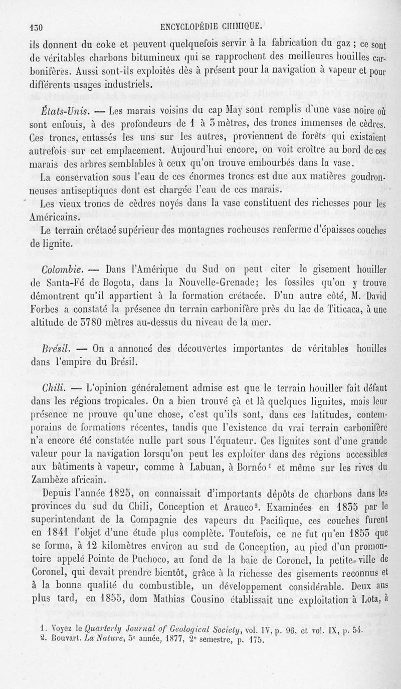 Encyclopédie chimique. Tome II.- Métalloïdes. Complément 1ère partie : charbon de bois, noir de fumée, combustibles minéraux, par MM. Urbain et Stanislas Meunier.