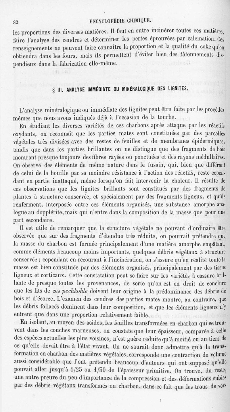 Encyclopédie chimique. Tome II.- Métalloïdes. Complément 1ère partie : charbon de bois, noir de fumée, combustibles minéraux, par MM. Urbain et Stanislas Meunier.