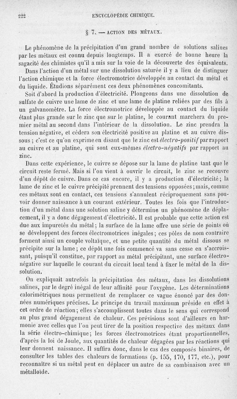 Encyclopédie chimique.Tome III.- Métaux. 1er cahier : propriétés générales des métaux et des sels, principes de classification, par M. G. Rousseau.