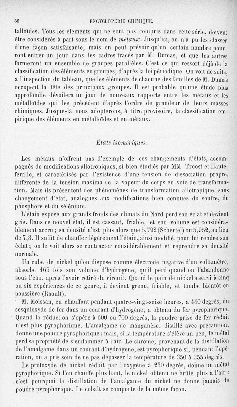 Encyclopédie chimique.Tome III.- Métaux. 1er cahier : propriétés générales des métaux et des sels, principes de classification, par M. G. Rousseau.