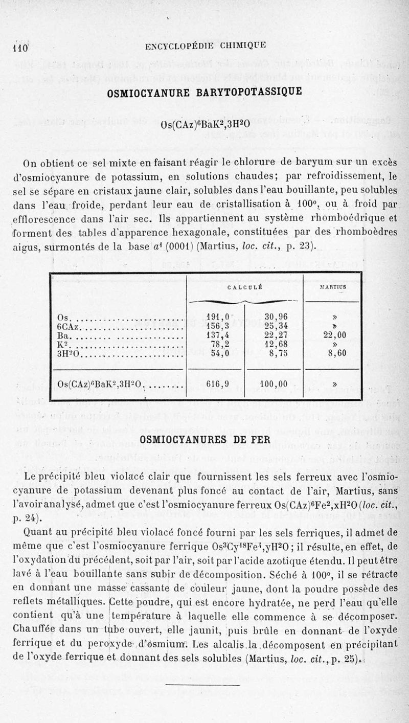 Encyclopédie chimique.Tome III.- Métaux. 17e cahier : platine et métaux qui l'accompagnent, 1er fascicule osmium et ruthénbium, par MM. A. Jolyn.