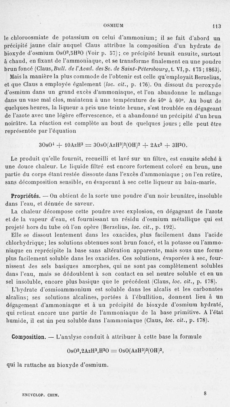 Encyclopédie chimique.Tome III.- Métaux. 17e cahier : platine et métaux qui l'accompagnent, 1er fascicule osmium et ruthénbium, par MM. A. Jolyn.
