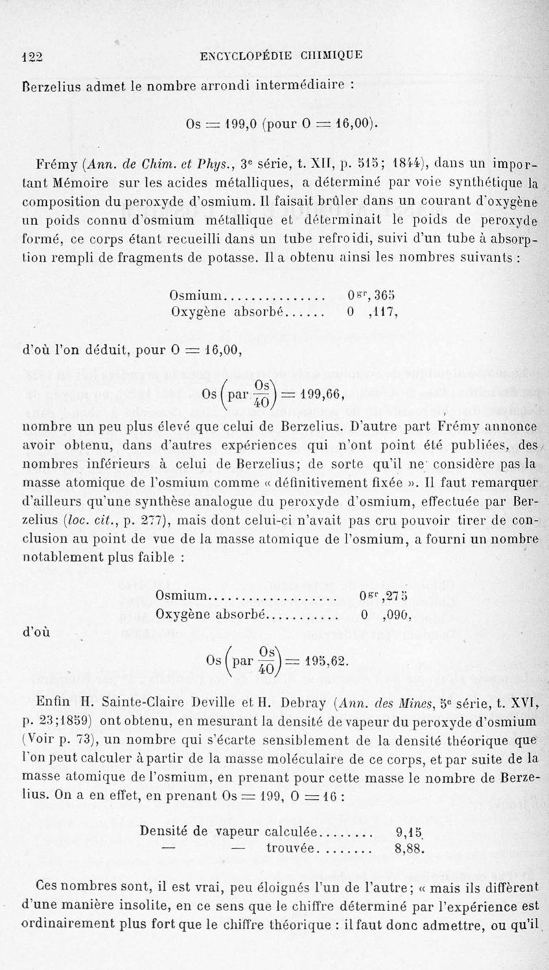 Encyclopédie chimique.Tome III.- Métaux. 17e cahier : platine et métaux qui l'accompagnent, 1er fascicule osmium et ruthénbium, par MM. A. Jolyn.