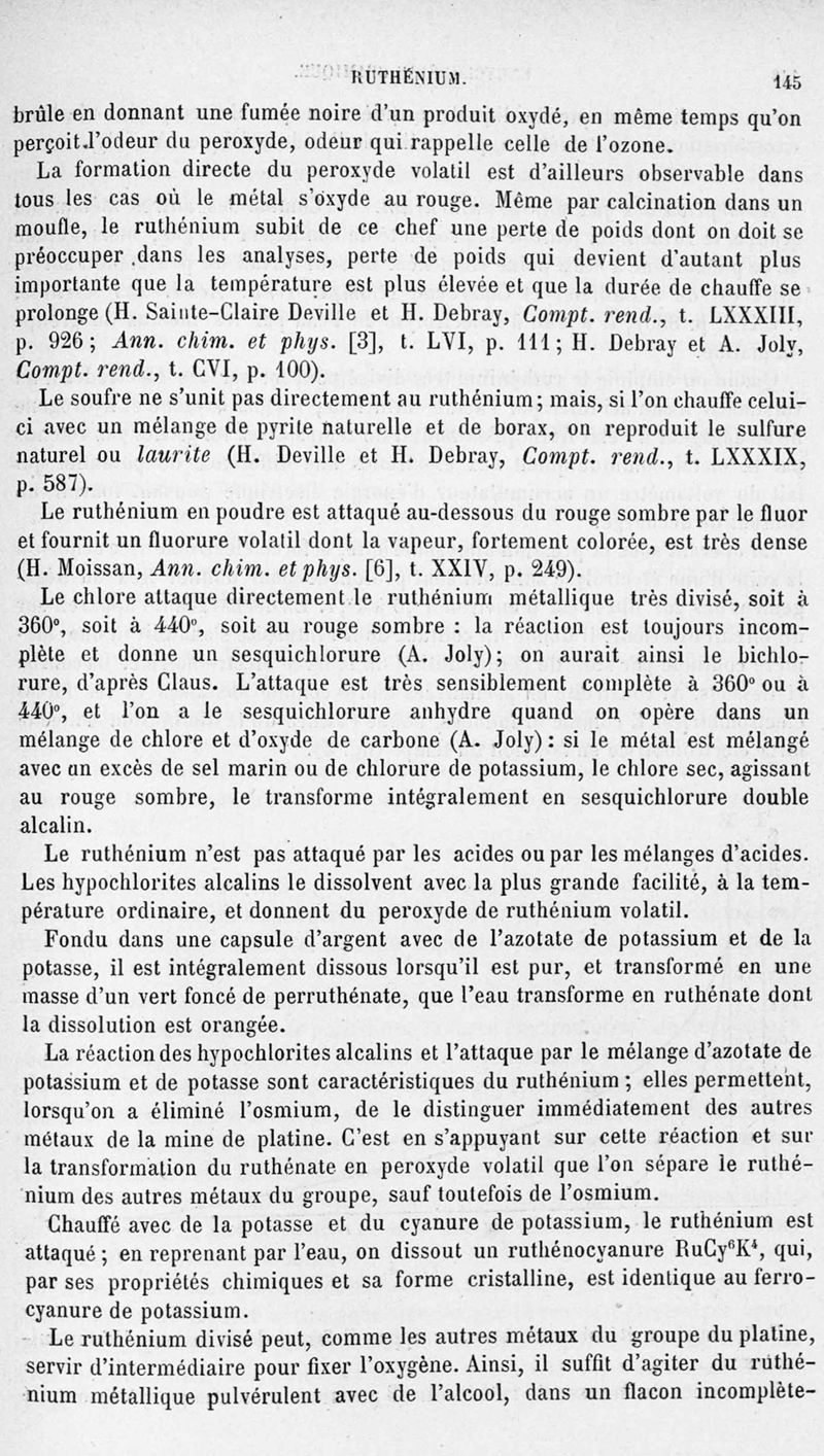 Encyclopédie chimique.Tome III.- Métaux. 17e cahier : platine et métaux qui l'accompagnent, 1er fascicule osmium et ruthénbium, par MM. A. Jolyn.