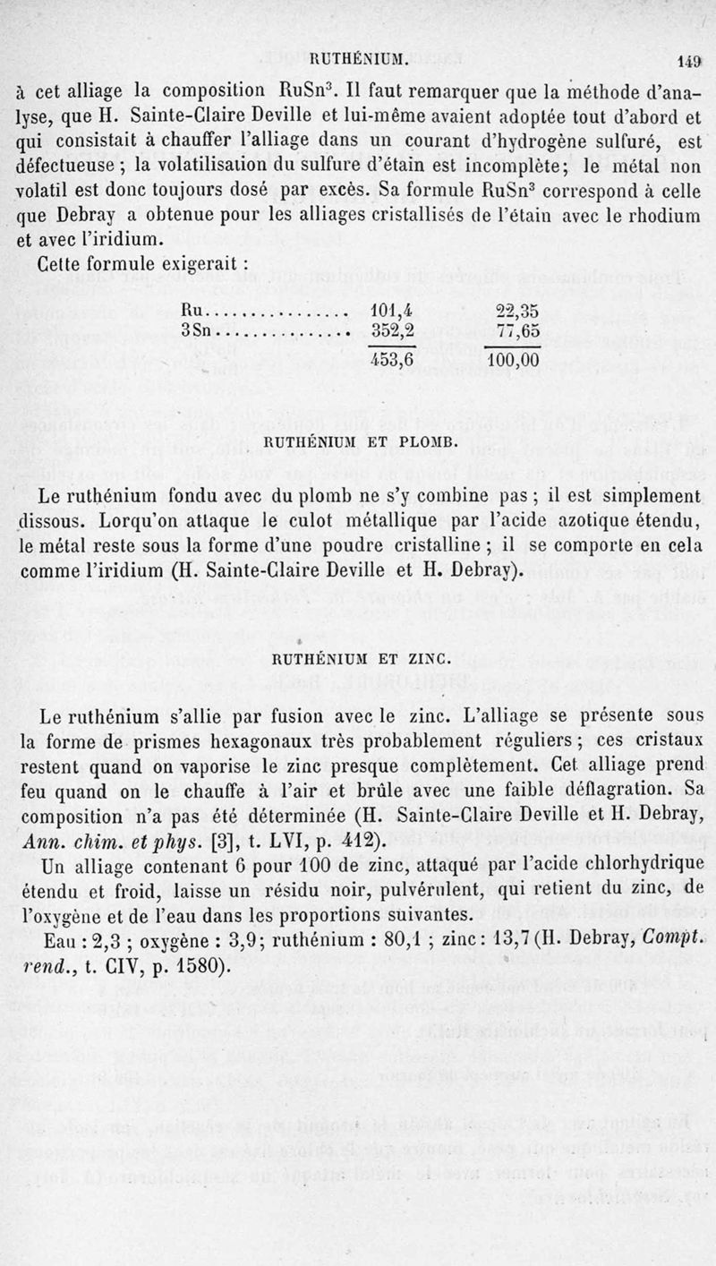 Encyclopédie chimique.Tome III.- Métaux. 17e cahier : platine et métaux qui l'accompagnent, 1er fascicule osmium et ruthénbium, par MM. A. Jolyn.