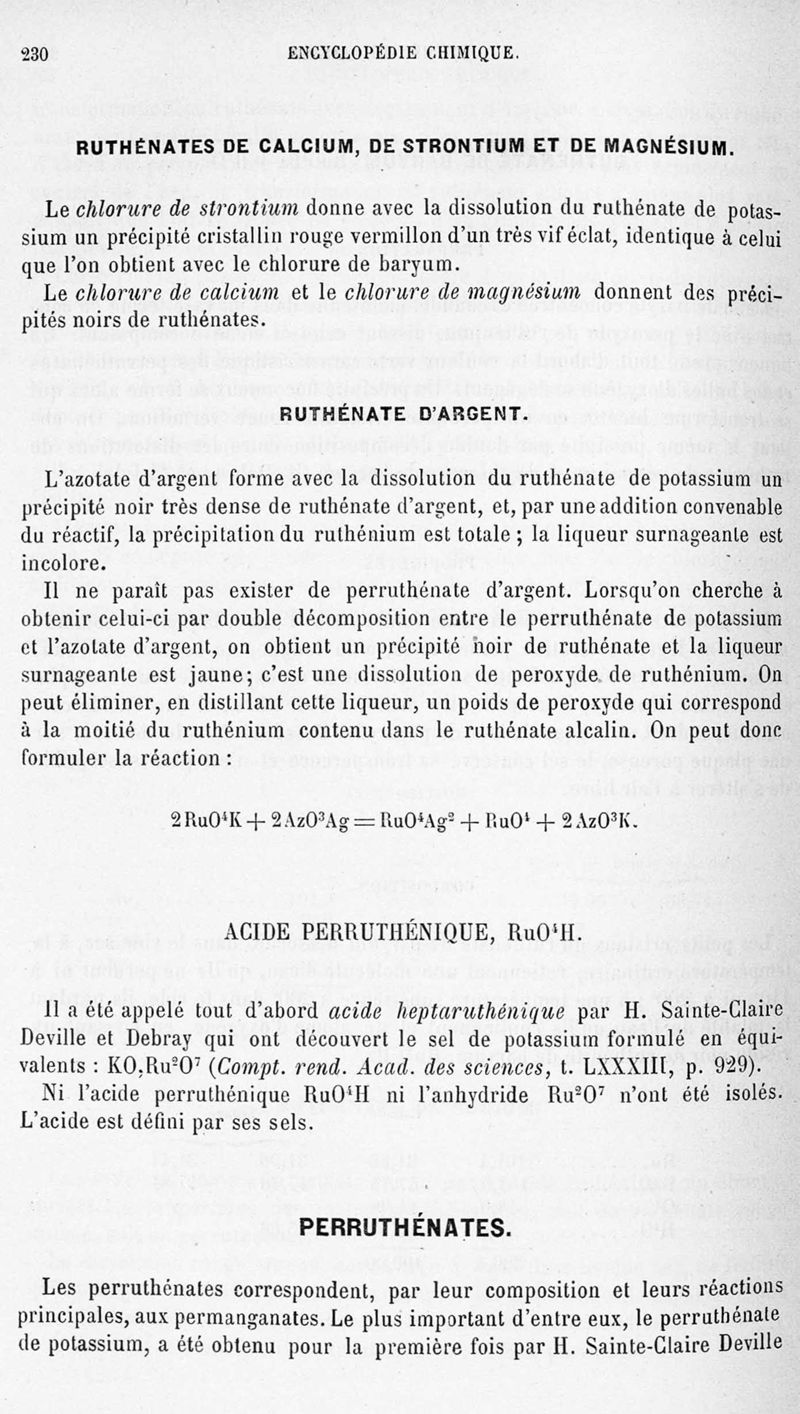 Encyclopédie chimique.Tome III.- Métaux. 17e cahier : platine et métaux qui l'accompagnent, 1er fascicule osmium et ruthénbium, par MM. A. Jolyn.