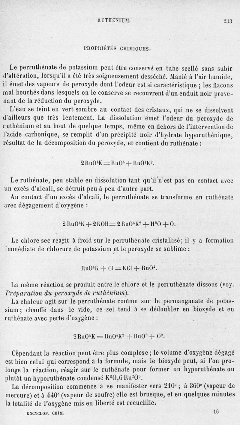 Encyclopédie chimique.Tome III.- Métaux. 17e cahier : platine et métaux qui l'accompagnent, 1er fascicule osmium et ruthénbium, par MM. A. Jolyn.