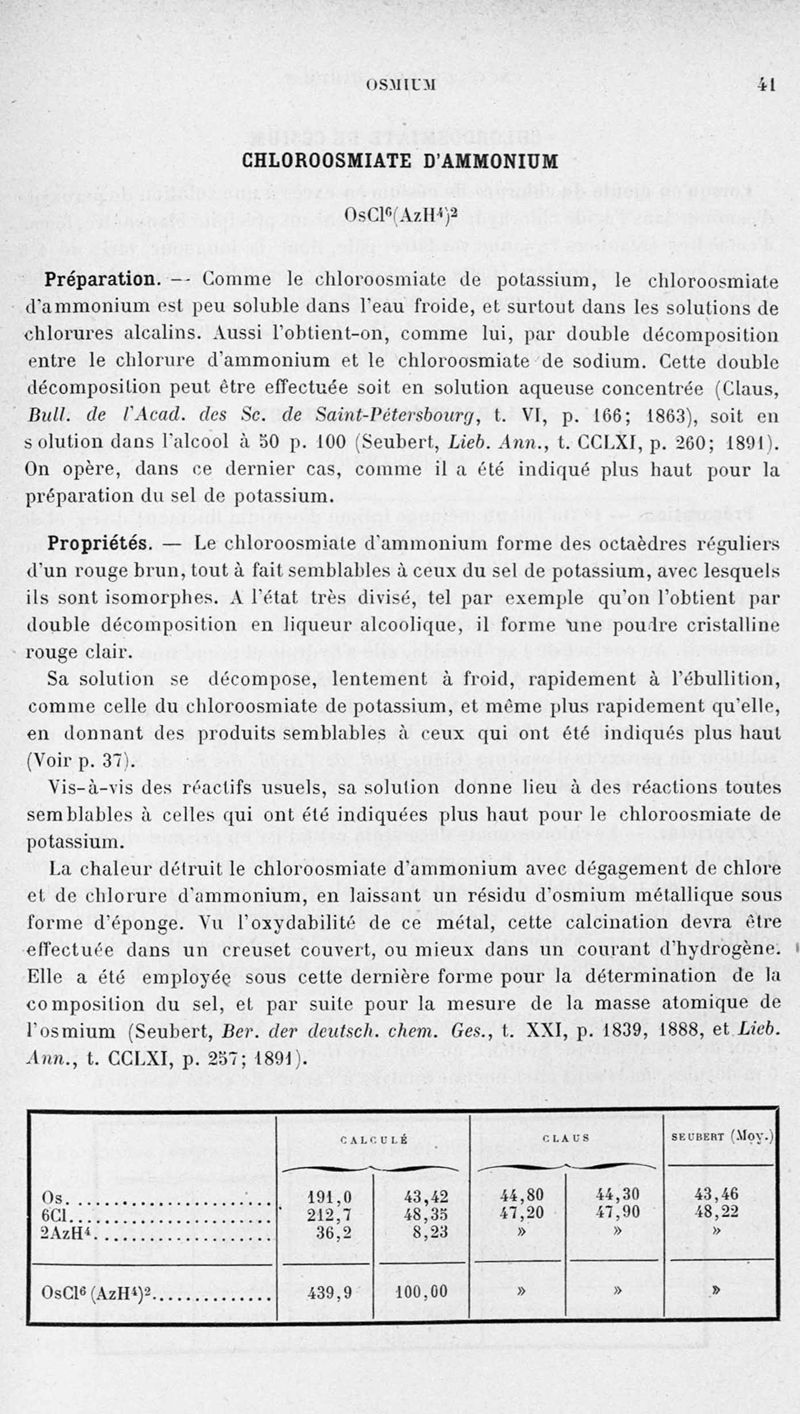 Encyclopédie chimique.Tome III.- Métaux. 17e cahier : platine et métaux qui l'accompagnent, 1er fascicule osmium et ruthénbium, par MM. A. Jolyn.