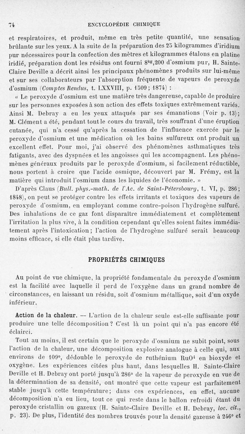 Encyclopédie chimique.Tome III.- Métaux. 17e cahier : platine et métaux qui l'accompagnent, 1er fascicule osmium et ruthénbium, par MM. A. Jolyn.