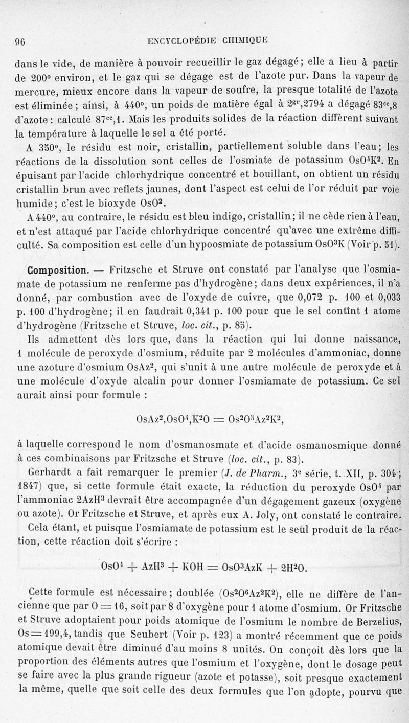 Encyclopédie chimique.Tome III.- Métaux. 17e cahier : platine et métaux qui l'accompagnent, 1er fascicule osmium et ruthénbium, par MM. A. Jolyn.
