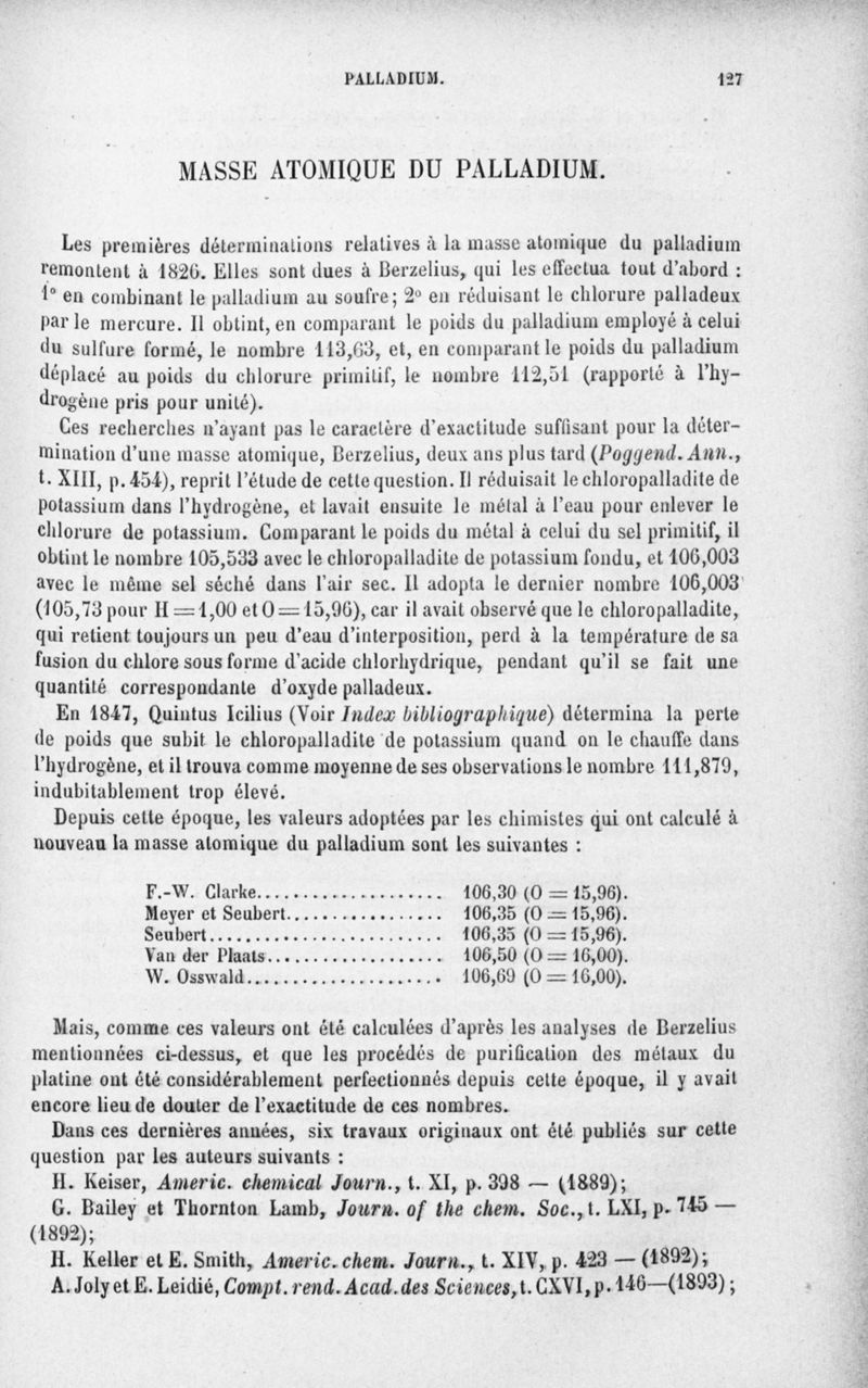 Encyclopédie chimique.Tome III.- Métaux. 17e cahier : platine et métaux qui l'accompagnent, 3e fascicule palladium, iridium et rhodium, par M. E. Leidié.