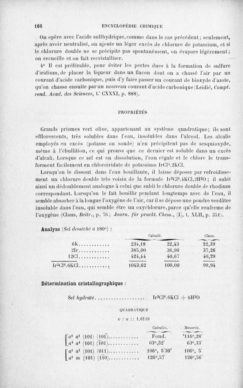 Encyclopédie chimique.Tome III.- Métaux. 17e cahier : platine et métaux qui l'accompagnent, 3e fascicule palladium, iridium et rhodium, par M. E. Leidié.