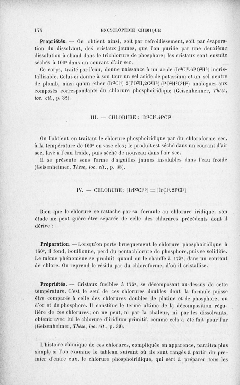 Encyclopédie chimique.Tome III.- Métaux. 17e cahier : platine et métaux qui l'accompagnent, 3e fascicule palladium, iridium et rhodium, par M. E. Leidié.