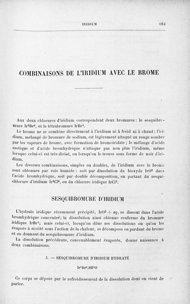 Encyclopédie chimique.Tome III.- Métaux. 17e cahier : platine et métaux qui l'accompagnent, 3e fascicule palladium, iridium et rhodium, par M. E. Leidié.