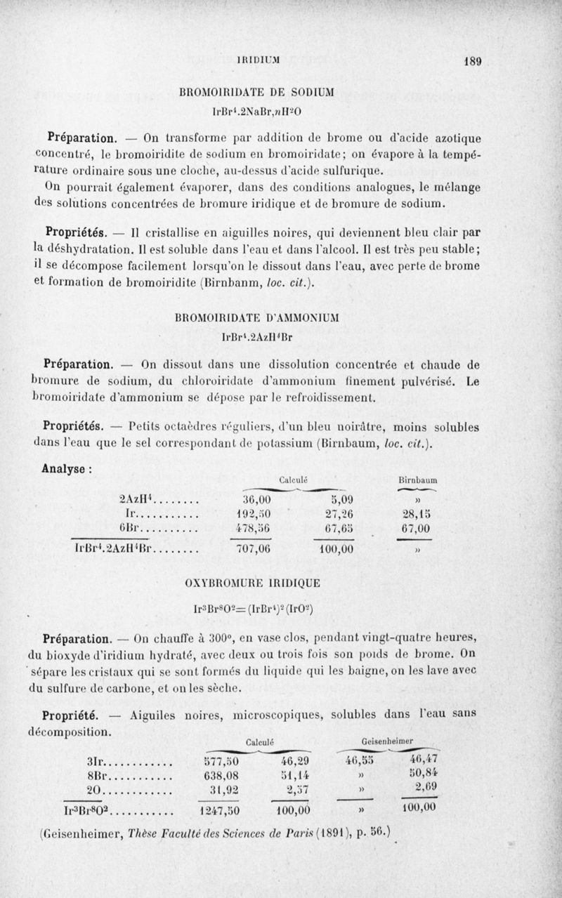 Encyclopédie chimique.Tome III.- Métaux. 17e cahier : platine et métaux qui l'accompagnent, 3e fascicule palladium, iridium et rhodium, par M. E. Leidié.