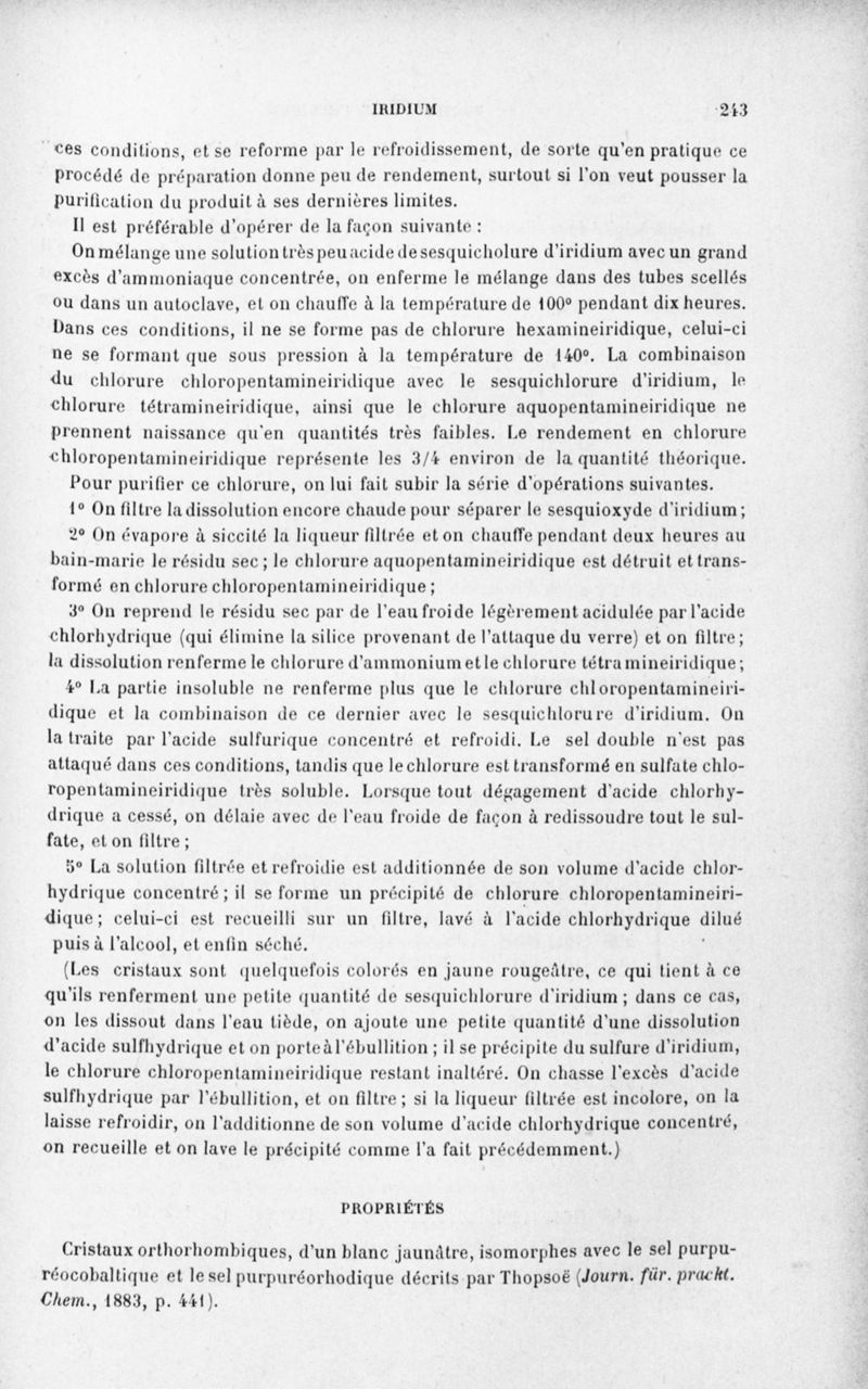 Encyclopédie chimique.Tome III.- Métaux. 17e cahier : platine et métaux qui l'accompagnent, 3e fascicule palladium, iridium et rhodium, par M. E. Leidié.