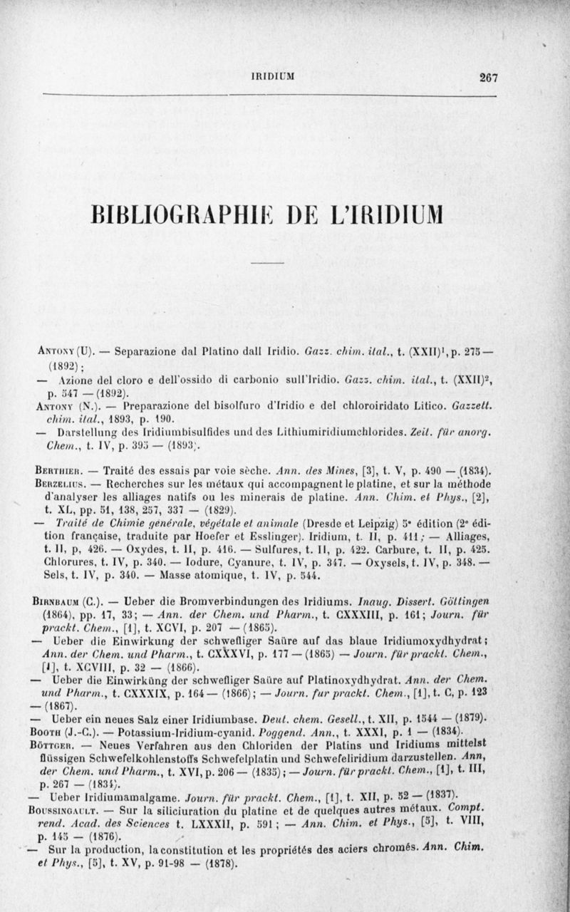 Encyclopédie chimique.Tome III.- Métaux. 17e cahier : platine et métaux qui l'accompagnent, 3e fascicule palladium, iridium et rhodium, par M. E. Leidié.