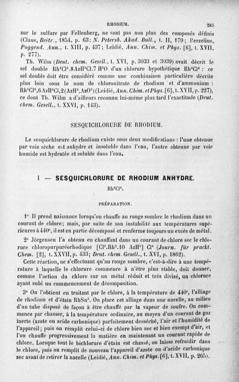 Encyclopédie chimique.Tome III.- Métaux. 17e cahier : platine et métaux qui l'accompagnent, 3e fascicule palladium, iridium et rhodium, par M. E. Leidié.