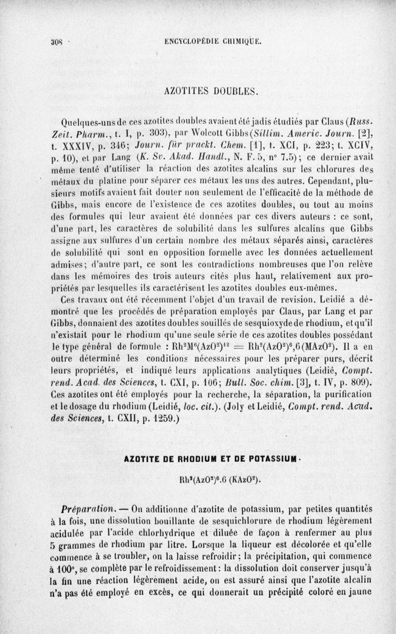 Encyclopédie chimique.Tome III.- Métaux. 17e cahier : platine et métaux qui l'accompagnent, 3e fascicule palladium, iridium et rhodium, par M. E. Leidié.