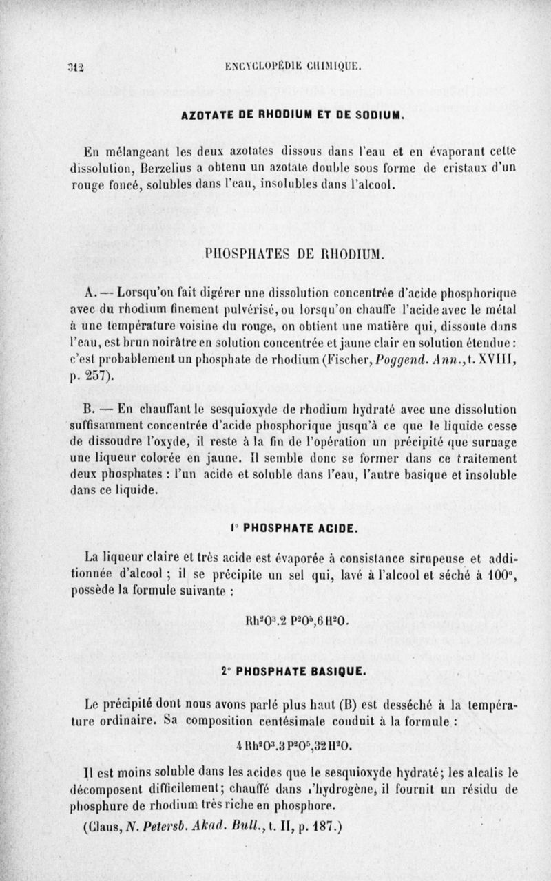 Encyclopédie chimique.Tome III.- Métaux. 17e cahier : platine et métaux qui l'accompagnent, 3e fascicule palladium, iridium et rhodium, par M. E. Leidié.