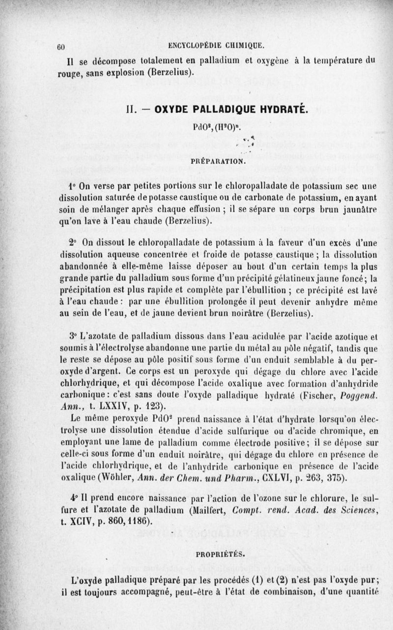 Encyclopédie chimique.Tome III.- Métaux. 17e cahier : platine et métaux qui l'accompagnent, 3e fascicule palladium, iridium et rhodium, par M. E. Leidié.
