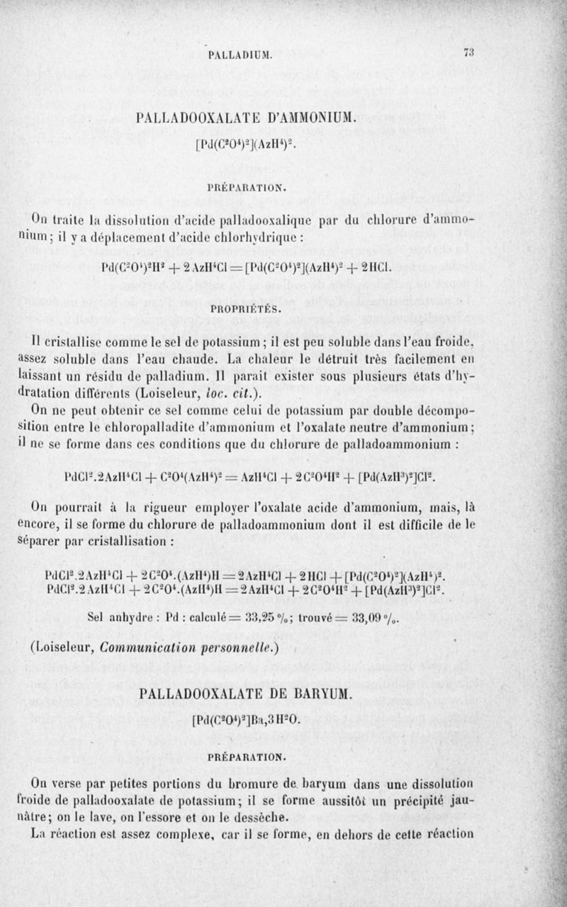 Encyclopédie chimique.Tome III.- Métaux. 17e cahier : platine et métaux qui l'accompagnent, 3e fascicule palladium, iridium et rhodium, par M. E. Leidié.