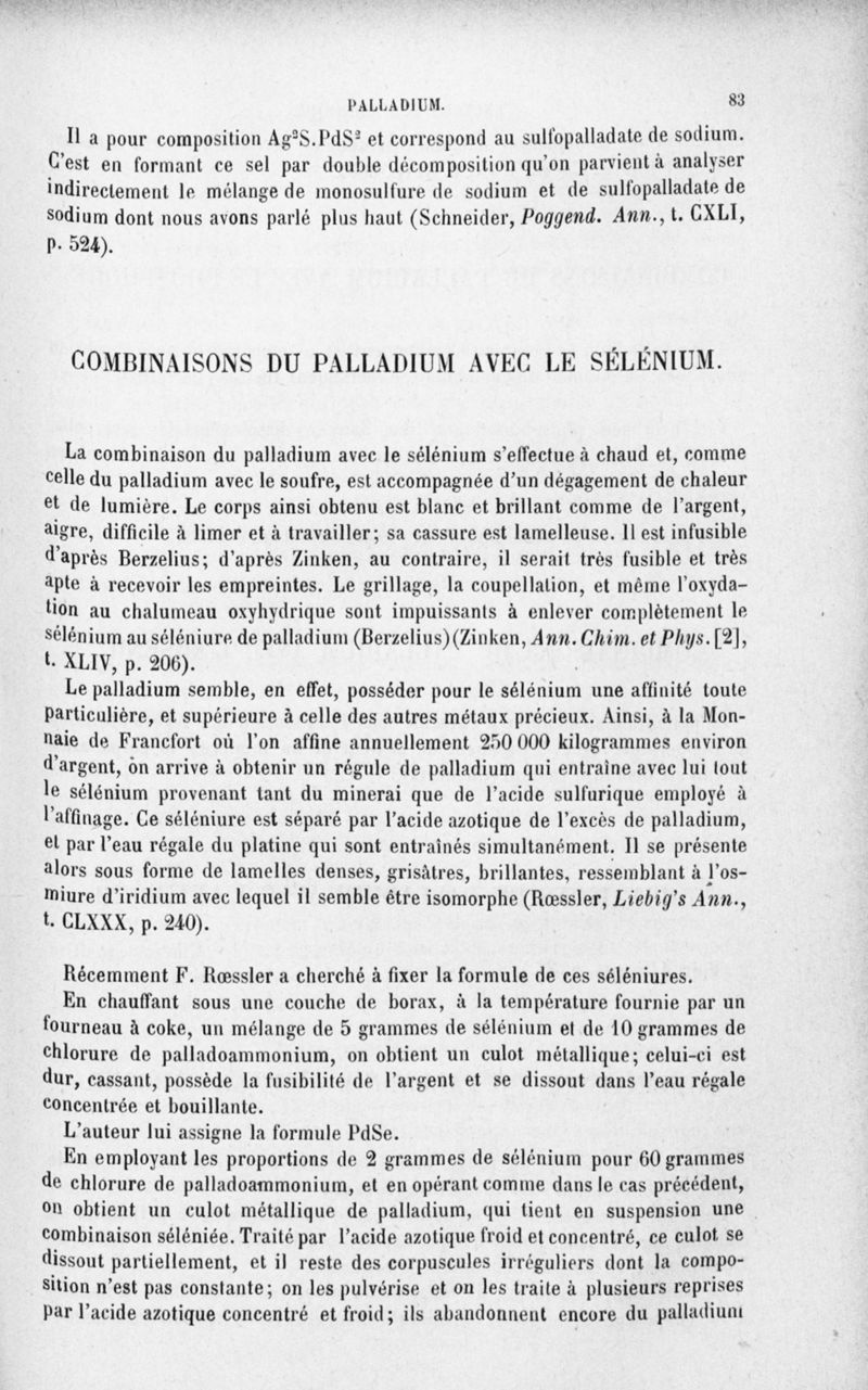 Encyclopédie chimique.Tome III.- Métaux. 17e cahier : platine et métaux qui l'accompagnent, 3e fascicule palladium, iridium et rhodium, par M. E. Leidié.