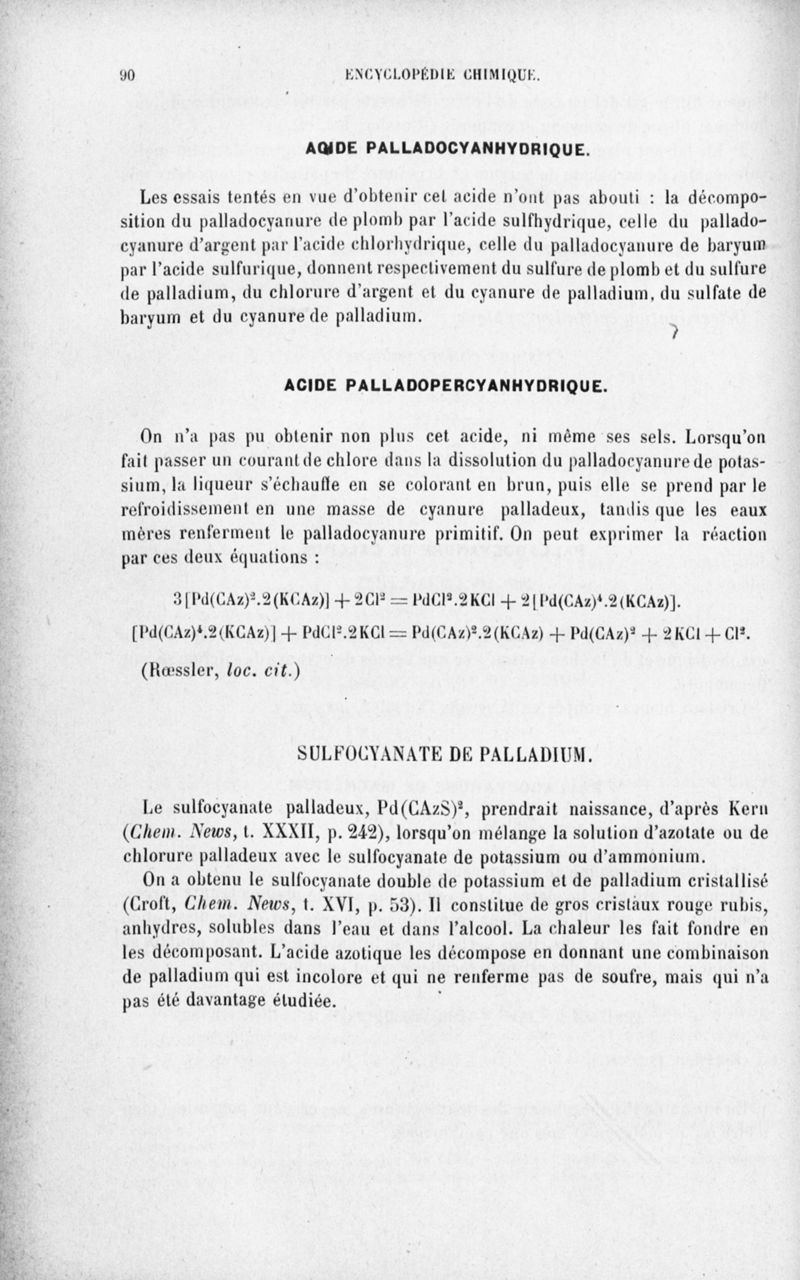 Encyclopédie chimique.Tome III.- Métaux. 17e cahier : platine et métaux qui l'accompagnent, 3e fascicule palladium, iridium et rhodium, par M. E. Leidié.