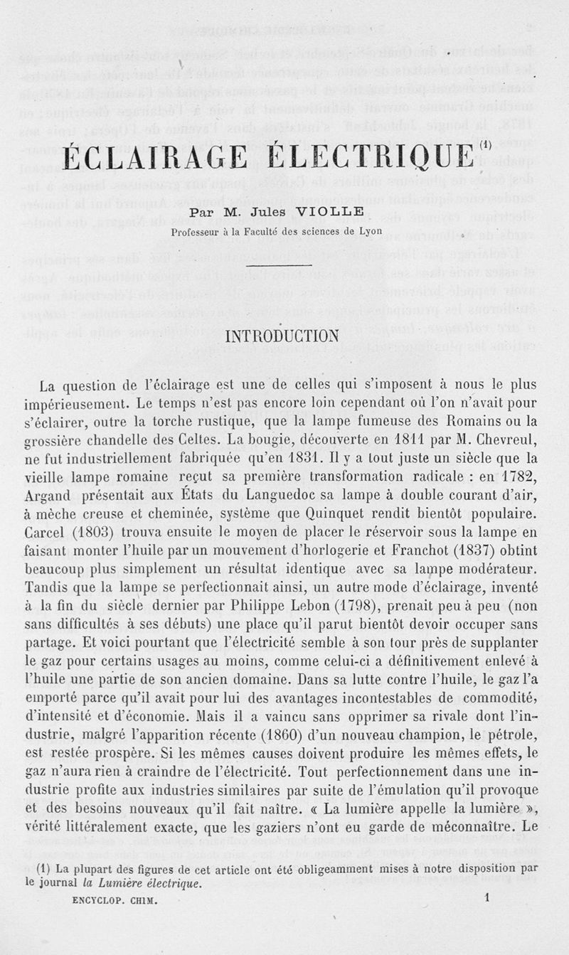 Encyclopédie chimique.Tome V.- Applications de la chimie inorganique. 2eme section : industries chimiques. 2e fascicule : éclairage électrique, par M. Violle.