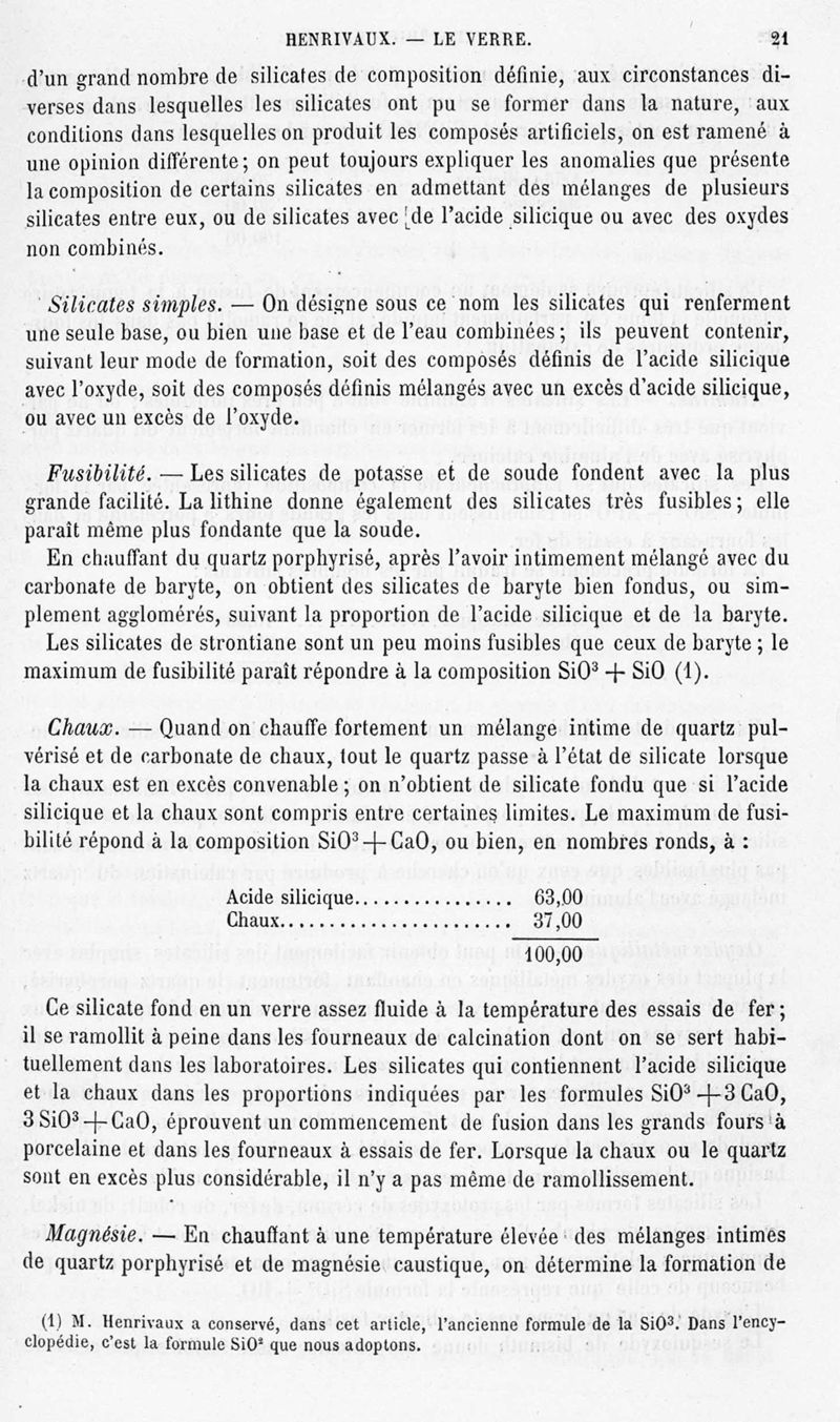 Encyclopédie chimique.Tome V.- Applications de la chimie inorganique. 2eme section : industries chimiques. [5e fascicule] : le verre et le cristal, par M. J. Henrivaux.