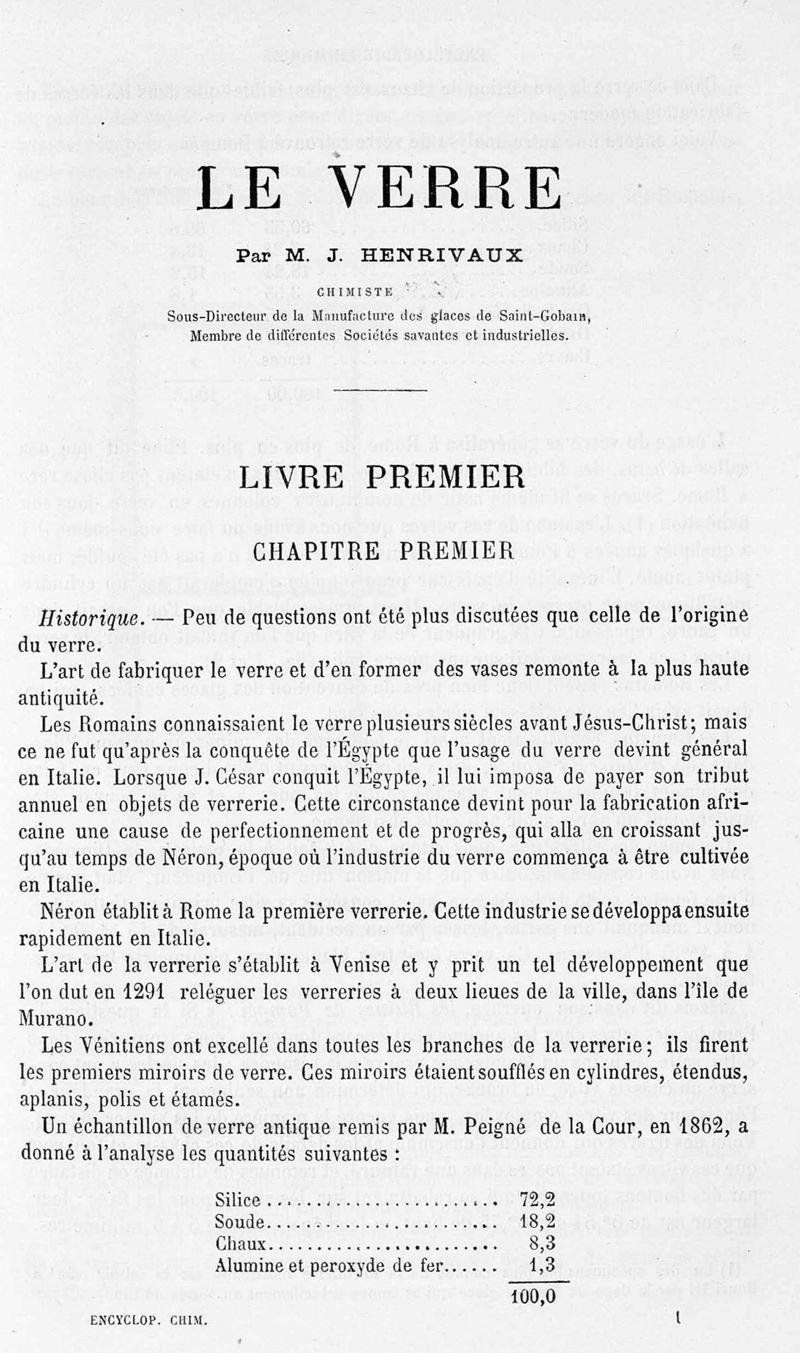 Encyclopédie chimique.Tome V.- Applications de la chimie inorganique. 2eme section : industries chimiques. [5e fascicule] : le verre et le cristal, par M. J. Henrivaux.