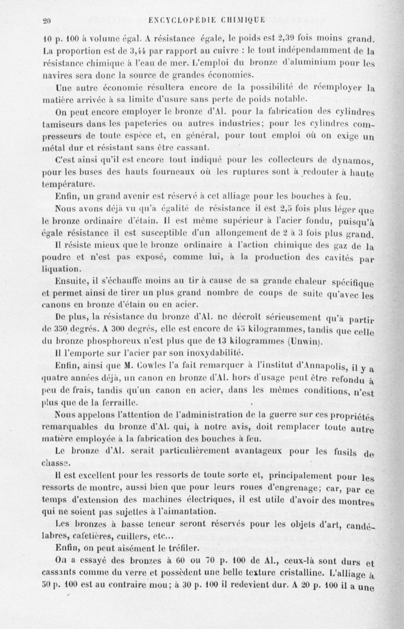 Encyclopédie chimique.Tome V.- Applications de la chimie inorganique. 2eme section : industries chimiques. 2e partie : métallurgie. L'alluminium et ses alliages, par M. Wickersheimer.