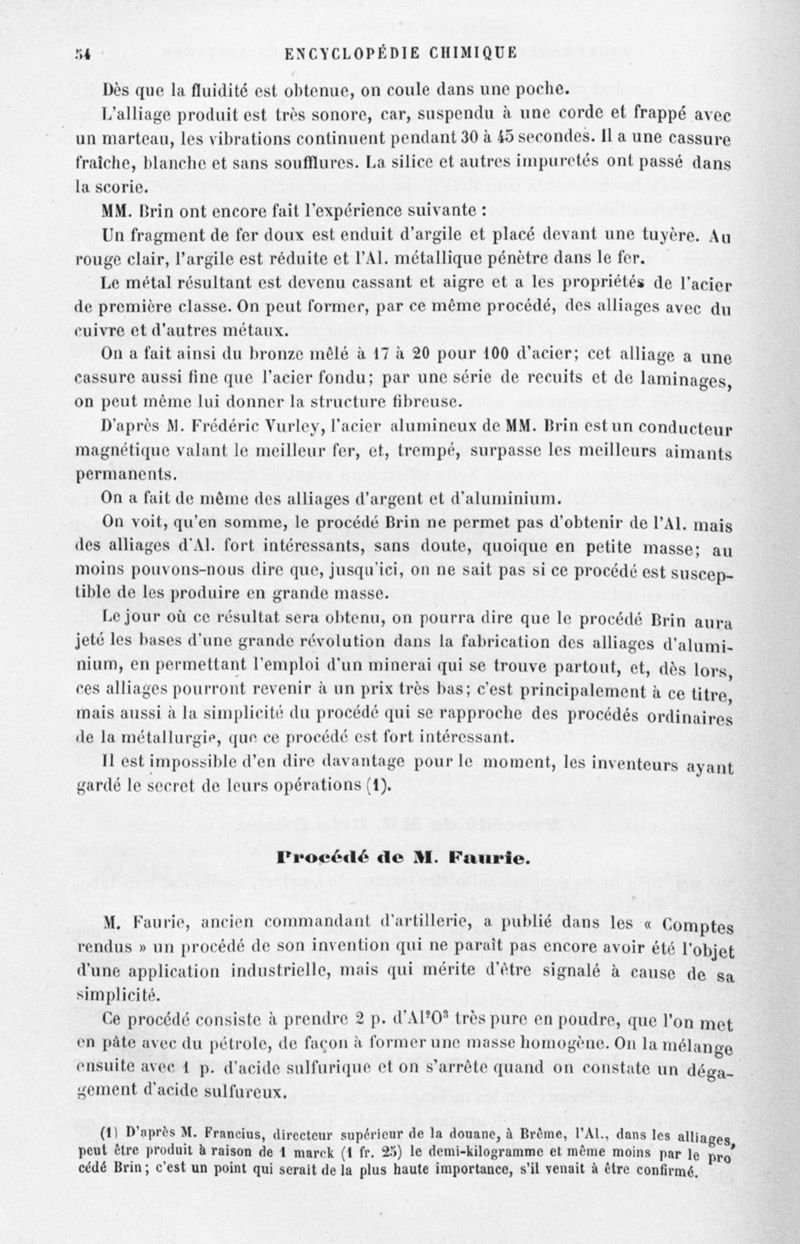 Encyclopédie chimique.Tome V.- Applications de la chimie inorganique. 2eme section : industries chimiques. 2e partie : métallurgie. L'alluminium et ses alliages, par M. Wickersheimer.