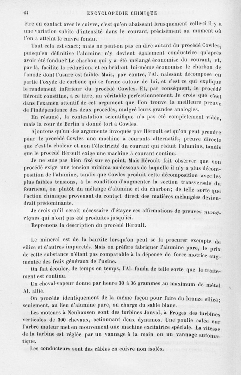 Encyclopédie chimique.Tome V.- Applications de la chimie inorganique. 2eme section : industries chimiques. 2e partie : métallurgie. L'alluminium et ses alliages, par M. Wickersheimer.