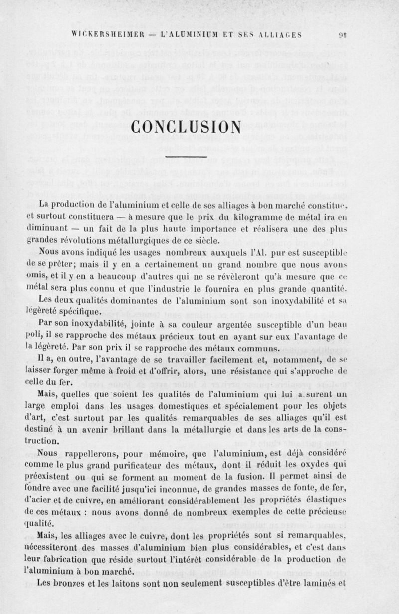 Encyclopédie chimique.Tome V.- Applications de la chimie inorganique. 2eme section : industries chimiques. 2e partie : métallurgie. L'alluminium et ses alliages, par M. Wickersheimer.